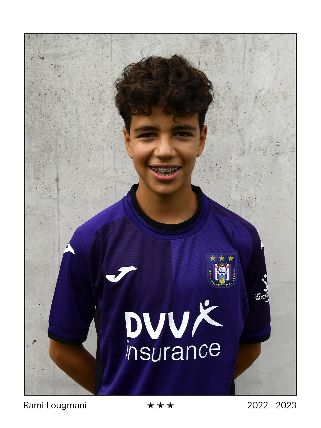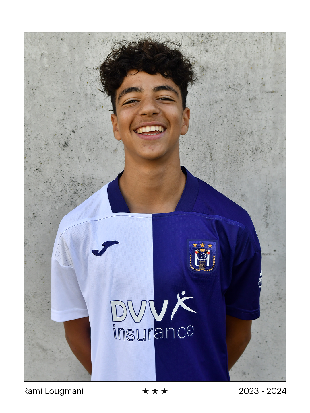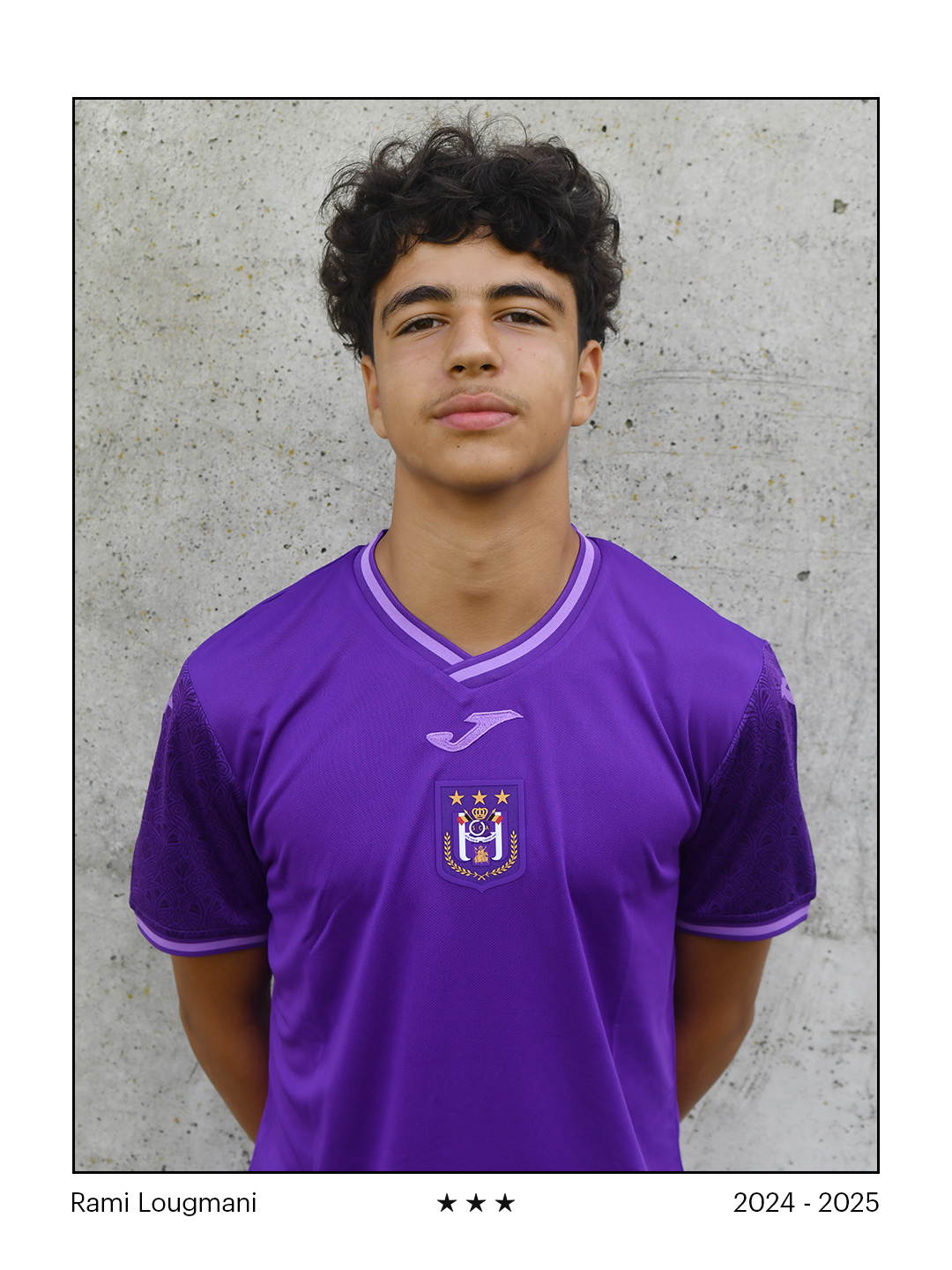 Rami Lougmani (16) loopt sinds zeer jonge leeftijd rond op Neerpede. Hij sloot op zijn zesde in de zomer van 2015 aan bij paars-wit. Sindsdien ontwikkelde Rami zich in snel tempo doorheen de jeugdopleiding van RSCA. Hij groeide uit tot een veelzijdige aanvaller van 1,85 meter, die nu beloond wordt voor zijn veelbelovende vooruitgang en zijn voorbeeldige mentaliteit.